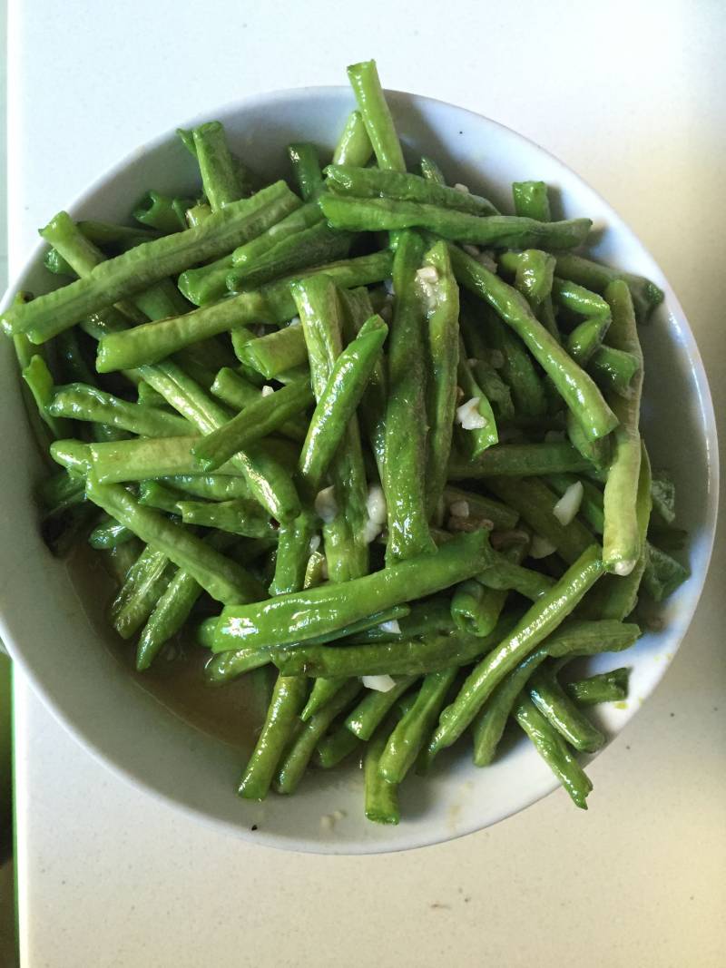 1:蒜拍碎切成蒜泥,长豆洗净,摘成小段