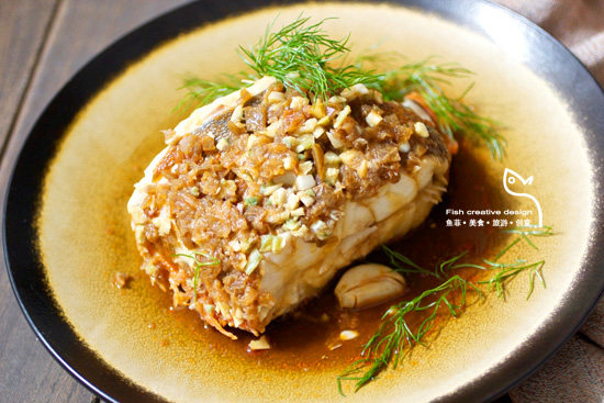 4:碗中垫葱姜,剁碎的咸柠檬和蒜茸铺在鱼身,放姜片