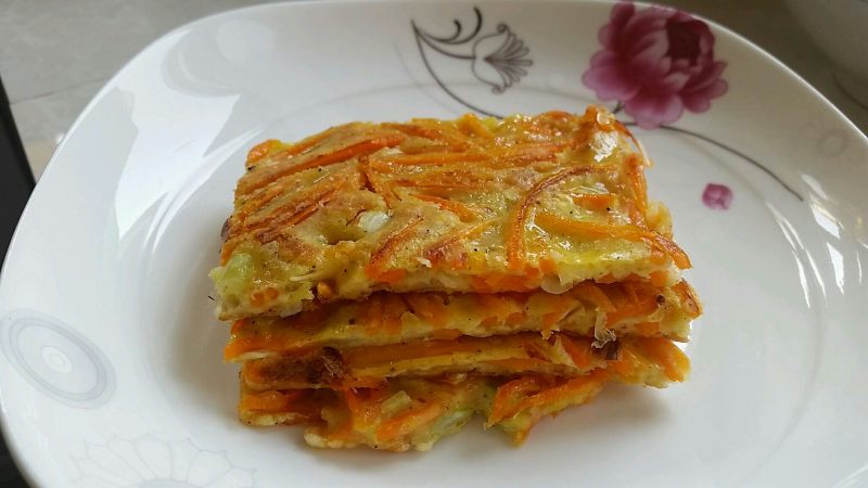 9:翻面后再摊3分钟,美味的又有颜值的胡萝卜饼就出锅了。