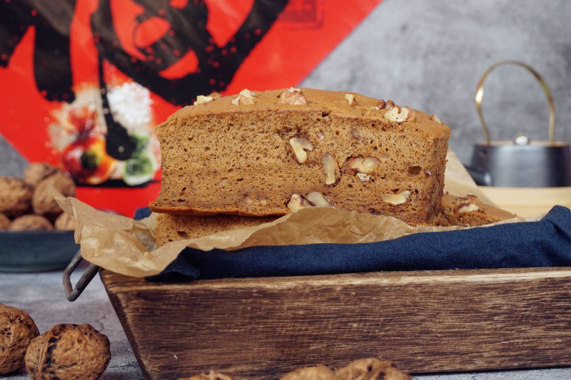 18:倒扣了一夜,第二天清早脱模,美美的核桃糕就成功了,作早餐,营养美味