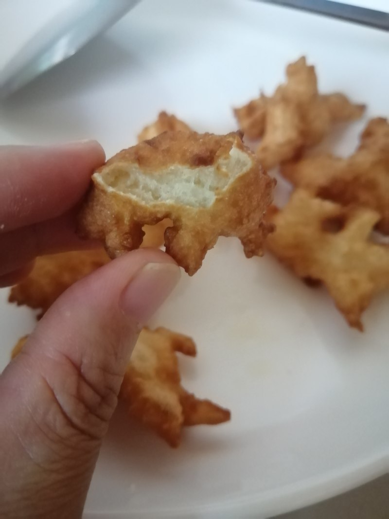 6:热锅热油。丢个指甲块大小的面团放锅里,如果能很快泡起来,油温就好了。