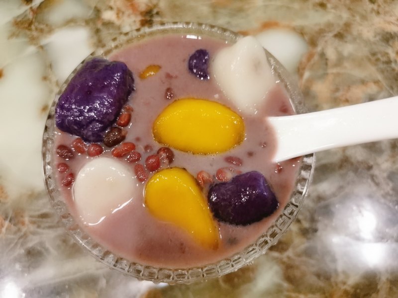 栗子薯1个;红豆1碗;紫薯1个;芋头1个;