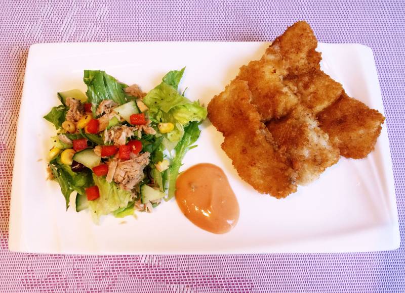 5:炸好的鱼柳要趁热吃哦,可以沾着番茄酱,味道更好哦。