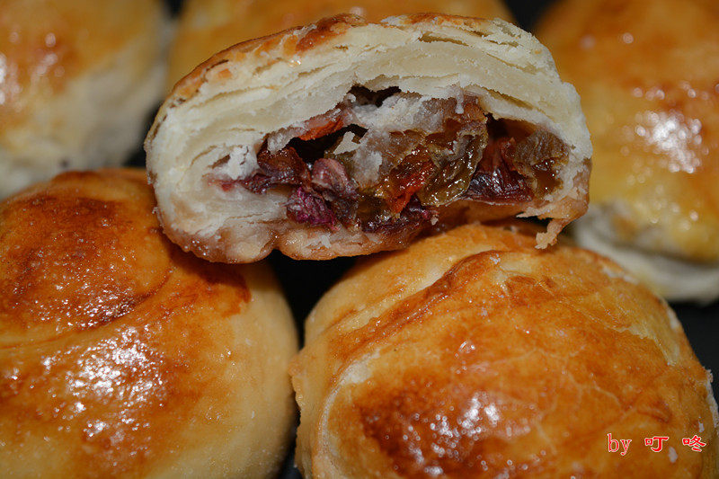 14:烤箱180度,中层,20分钟左右,玫瑰鲜花饼就出炉了。