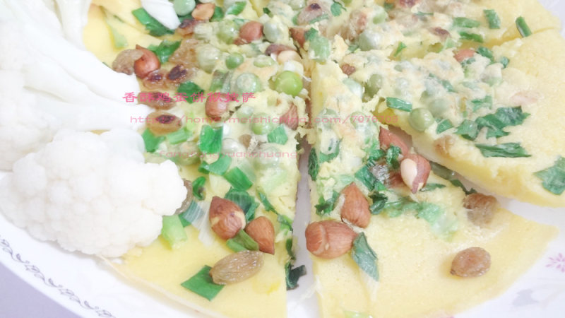 杏仁适量;葡萄干适量;豌豆适量;菜花适量;