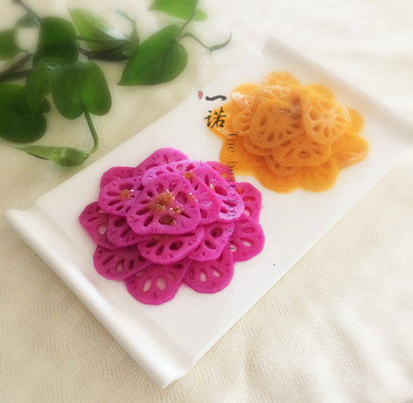 14:将糖浆淋在切好的糖藕上,撒一点桂花作为点缀。