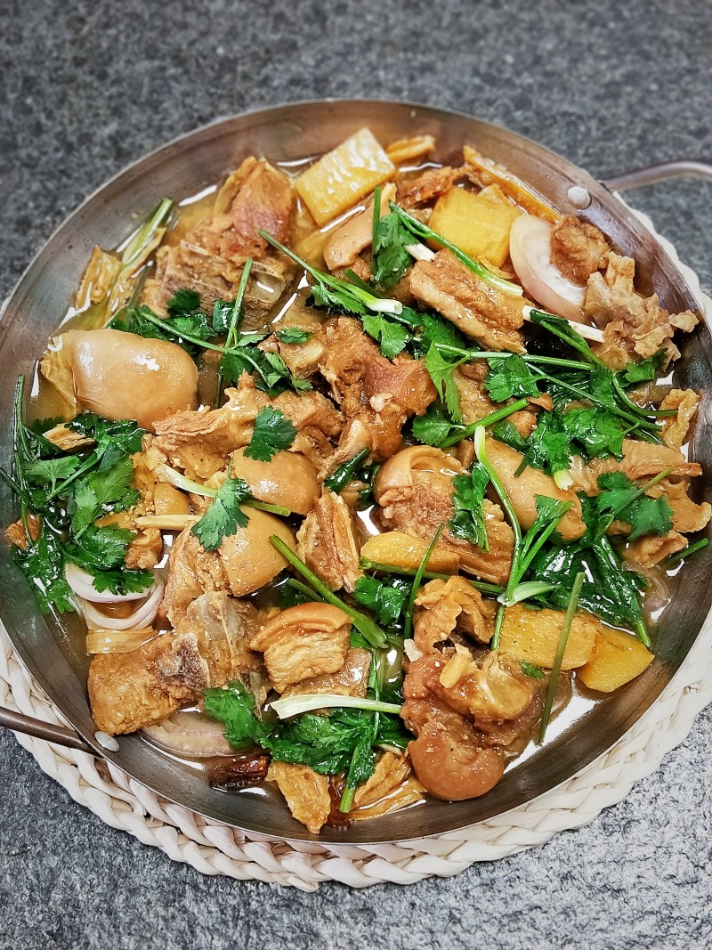 13:成品。盛入干锅,放点香菜或其他配菜,边煮边炖着吃更暖身。