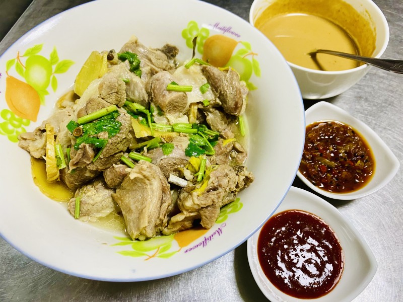 9:炖熟的羊肉晾凉后切成片,将饼掰成黄豆粒大小,粉丝泡软,蒜苗切段。锅中加一份羊肉汤和一份开水放入掰好馍,稍微煮三分钟,放粉丝、羊肉、蒜苗,调盐、胡椒粉淋明油即可。食用时配糖蒜、辣椒酱。