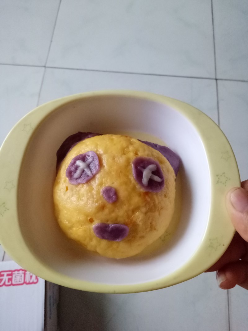 3:发酵好的南瓜面,紫薯面,做各种不同的卡通豆沙包