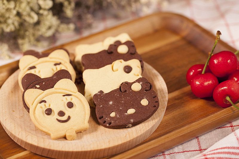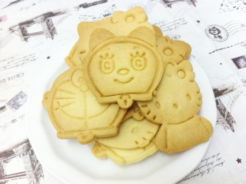 6:将面团擀成5mm薄片,用模具压模(也可以和妞妞一样手捏做成自己喜欢的动物的样子)