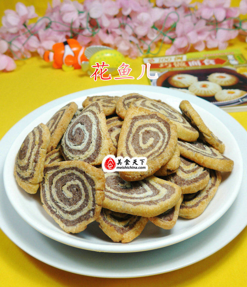 1:红糖用开水化开,加入全部材料,和成咖色面团,红糖颜色不够的,可以加入10克左右可可粉。白色同上合成白面团