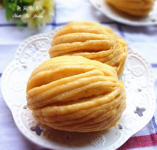 14:蒸熟的南瓜花卷颜色金黄,柔软膨松。