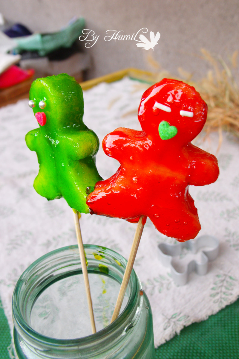 7:姜饼人苹果用厨房纸印干,插入竹签