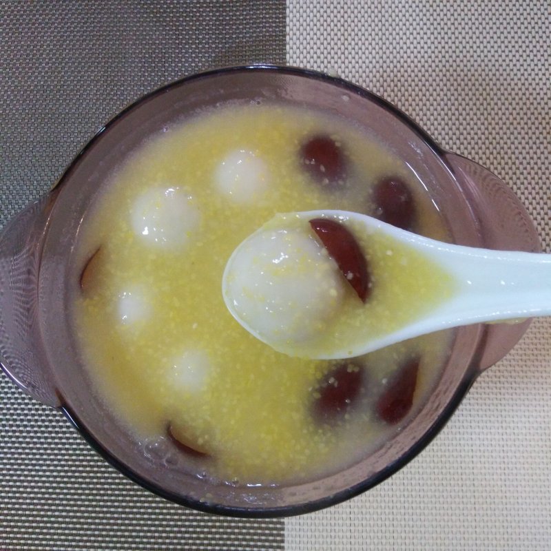 2:小碴子清洗干净放入锅中加入红枣片烧开中火熬20分