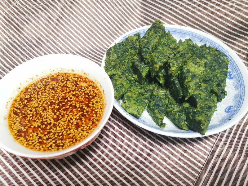 6:蘸料,碗中放入蒜泥,白芝麻,辣椒面,油烧开后浇再辣椒面和蒜泥上,然后加入醋,酱油,香油,盐调味。
