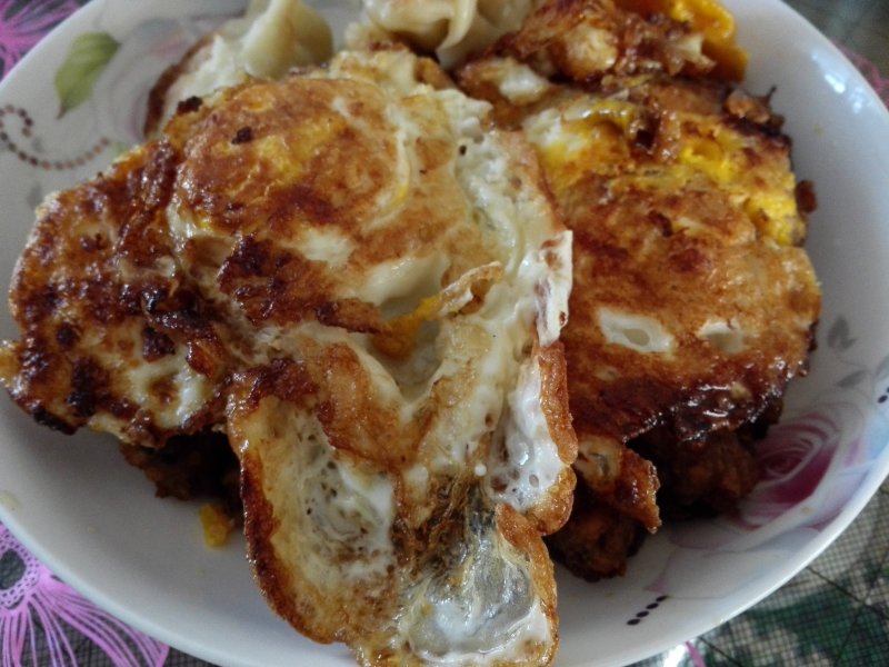 1:中午两人吃饭,煎四个荷包蛋。