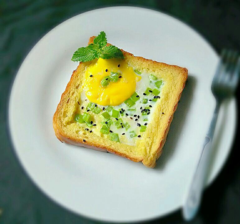 这是一道吐司和鸡蛋融入一体、奶香十足的早餐,盖圆形吐司片时可能会有滑动的感觉,轻轻放上并用铲子小心快速翻面即可保证形状的完好。