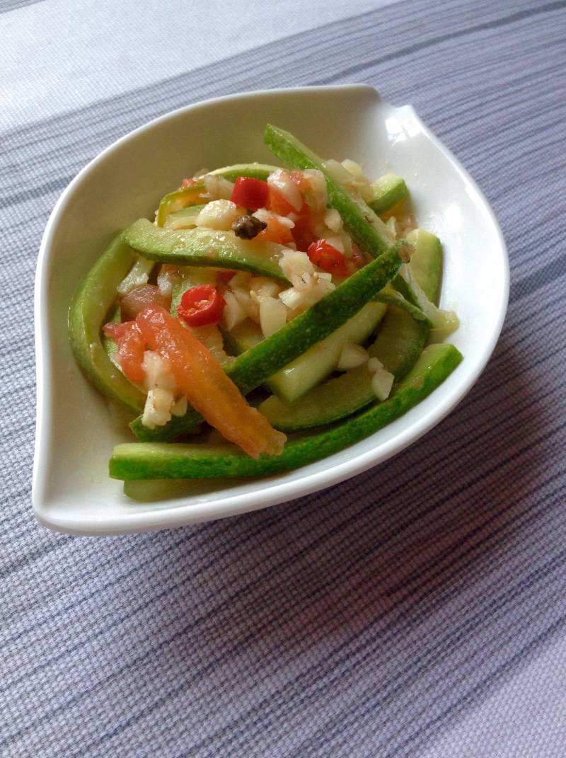 9:小西葫芦放入,中火、炒15秒左右,变翠绿了!