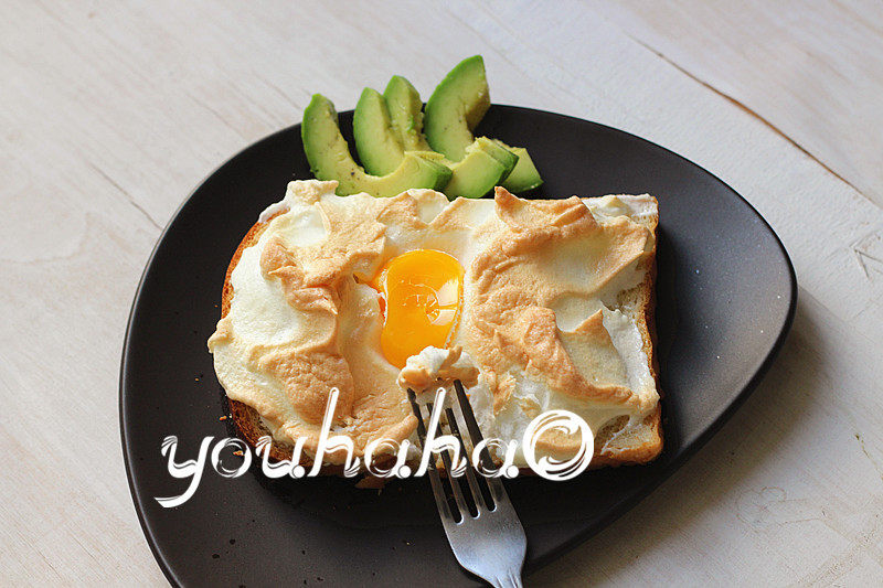 5:将蛋泡堆在土司片上,中央刨个坑。