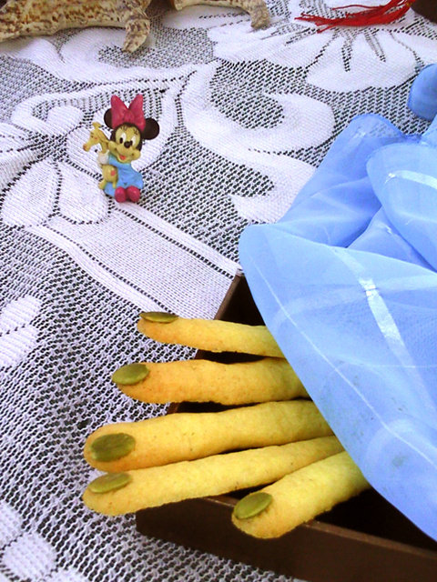 5:锅里热油,同时将土豆泥做成土豆条的形状(形状可以自选)