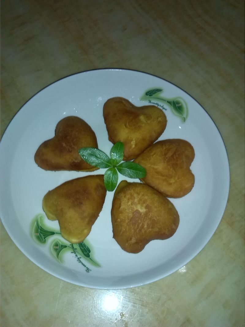 1:南瓜适量,去皮切片隔水蒸几分钟就熟烂了,捣烂成南瓜泥加糯米粉加糖加炼奶