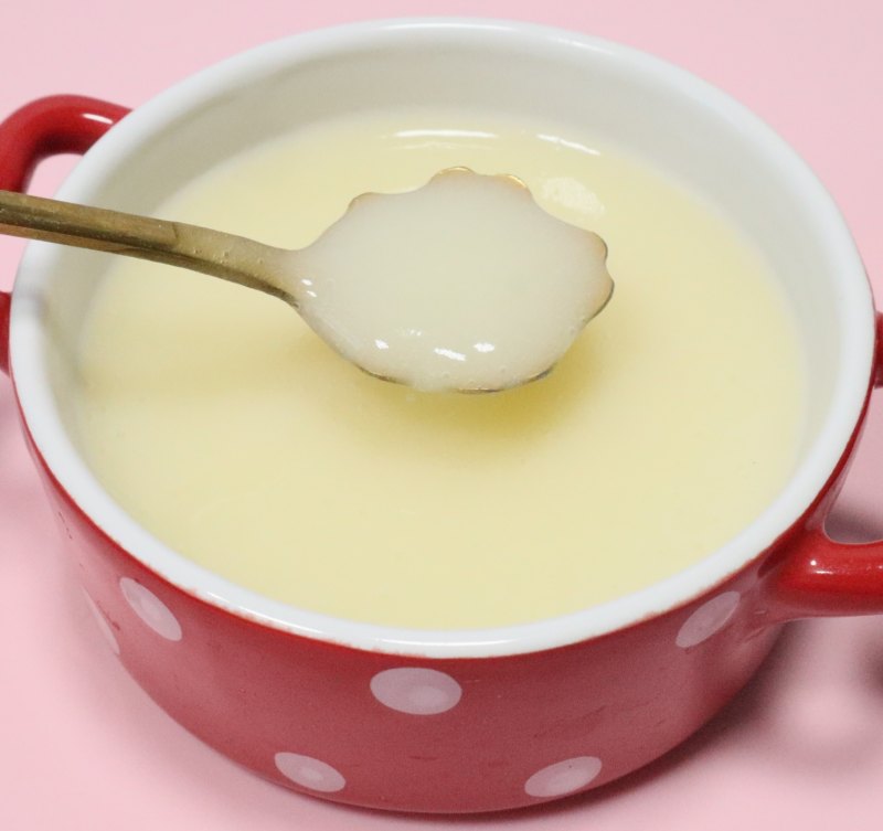 3:加入适量牛奶,稀释一下山药泥,不能太多,否则不好做出造型