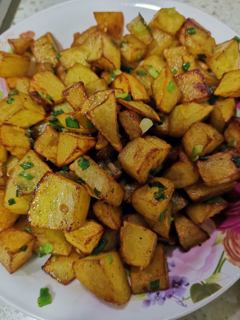 5:超级简单,孩子最爱。皮脆里糯,大宝直呼能不能马上吃一块的土豆块就做好了。