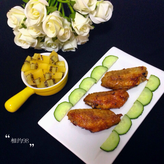 6:新鲜出路的莎莎私房甜辣鸡翅出炉了,美味又不会胖。