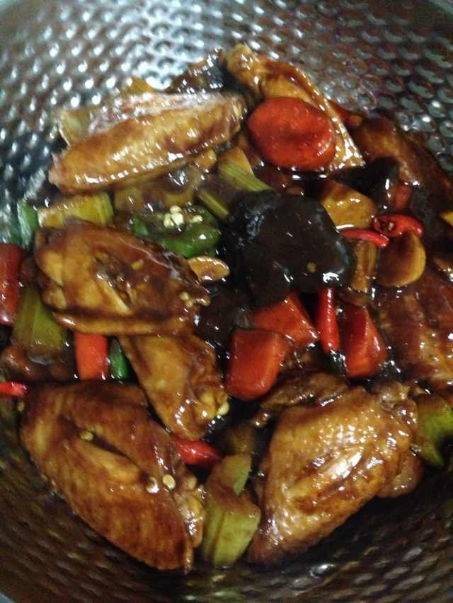 5:先炒鸡翅,后面把配料都放进去,最后放酱调好即可。