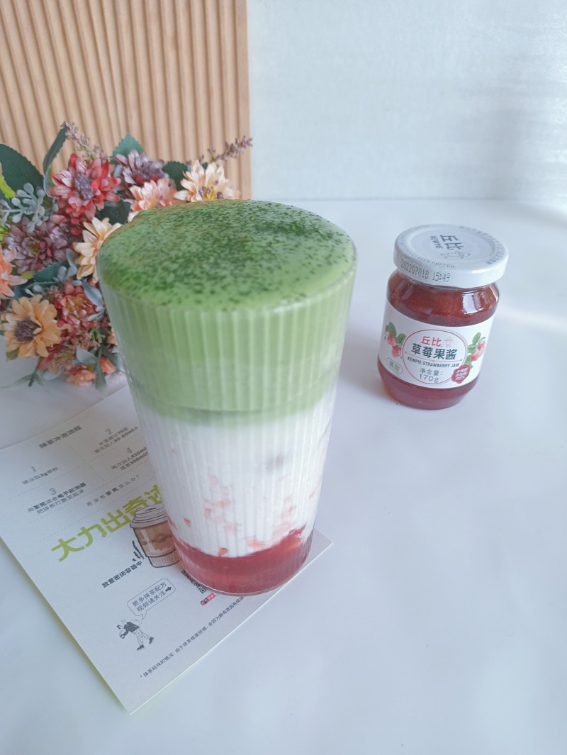 抹茶奶盖草莓牛乳