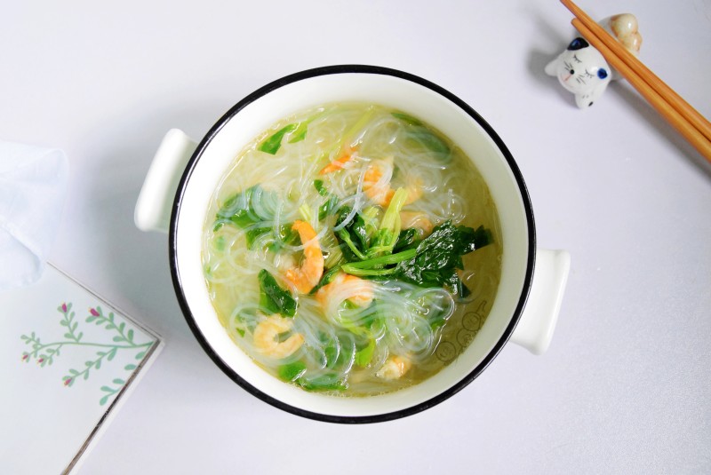 5:锅中加水3碗,先下粉丝和虾米煮10分钟;