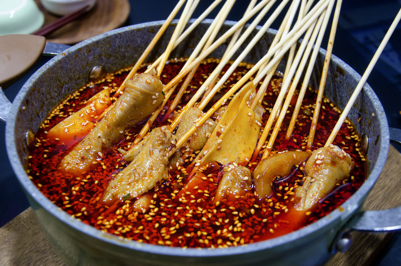 香料比较重要哈还有钵钵鸡基本都是冷的所以你的菜品应该是熟食哈可以用卤制品来做我想味道一定会不错另外就是辣椒花椒还有芝麻红油这些是最基本的配料哈钵钵鸡是四川的名小吃,是把菜品穿在竹签上放进装满作料的钵钵里!