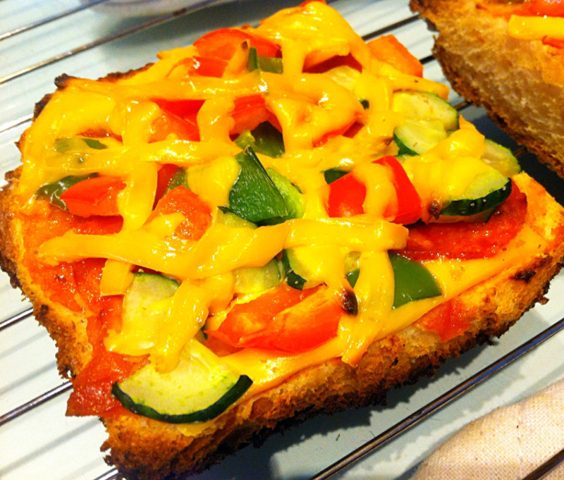7:时间到,取出烤盘,美味的土司披萨就出炉了