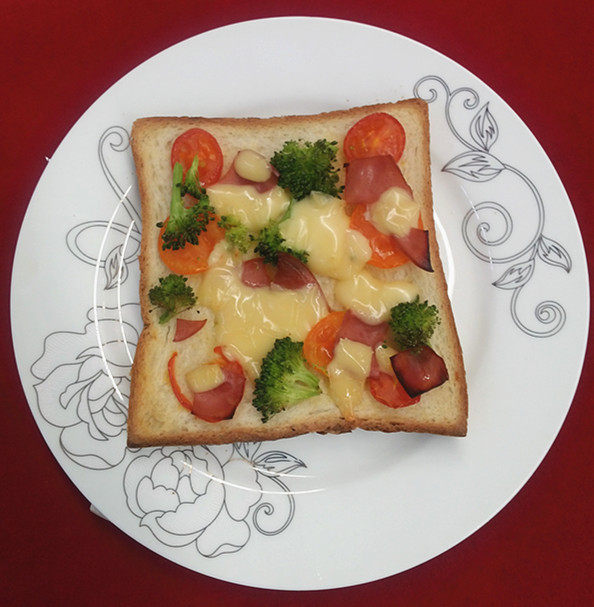1、土司抹过黄油液后,最好再抹层番茄沙司或披萨酱,会更好吃,但是主办方没有配备,只能将就了2、披萨上的食材:可以根据自己喜欢,看着放3、土司本是烤熟的,所以再烤制时,时间不能过长
