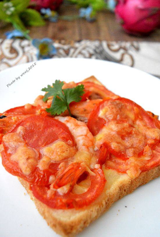 吐司2块;鲜虾4个;拉丝奶酪50g;生姜1片;番茄1个;