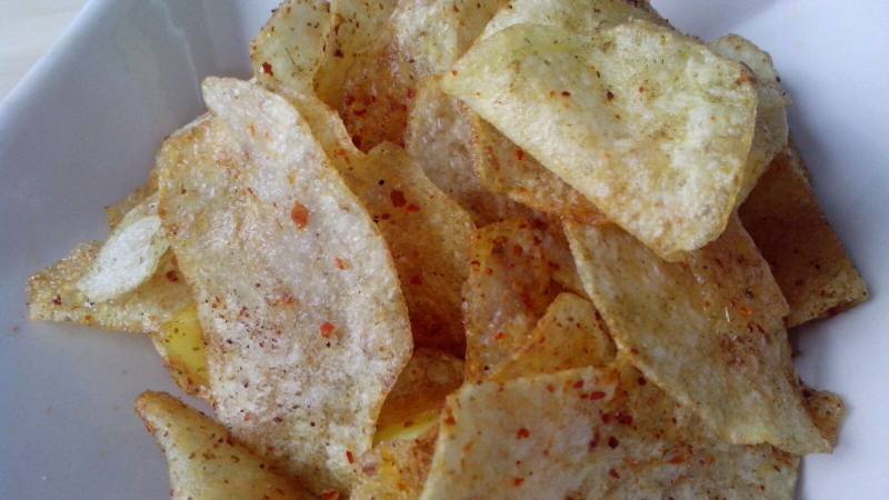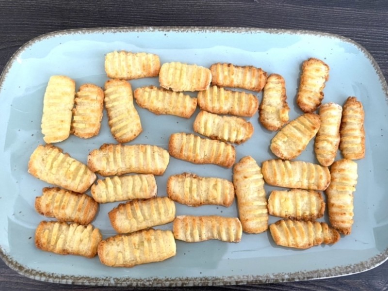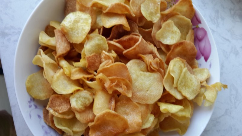 8:出炉的薯片,凉一凉就脆了;蘸上自制的番茄酱,很美味哦。