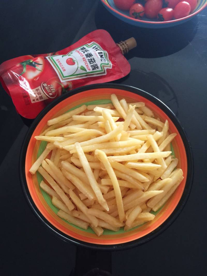 7:出炉,表面酥脆,蘸番茄酱,太好吃了。