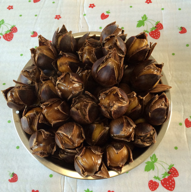 1:板栗用剪刀剪成十字口