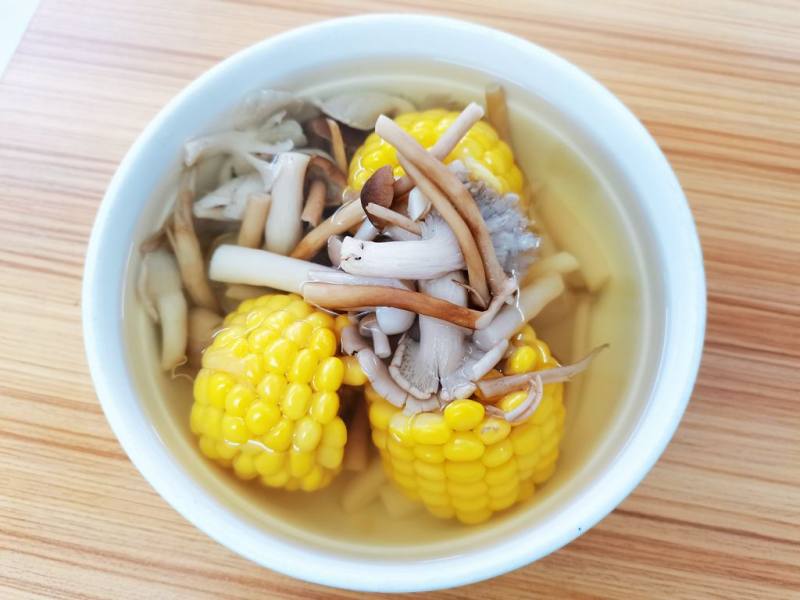 1:先把茶树菇去根切成段,白玉菇、蟹味菇切成段,甜玉米切成段,然后把所有的菌菇玉米放入水中清洗干净备用。