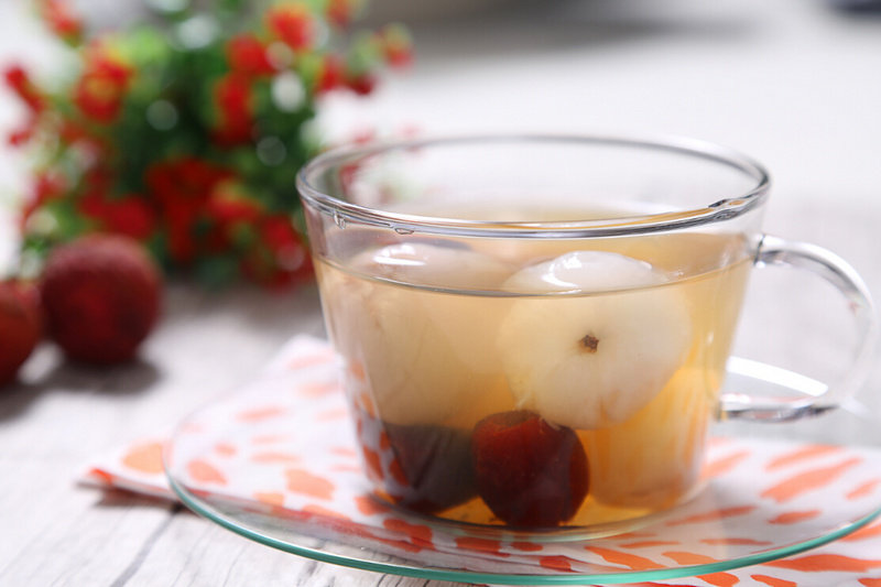 7:将荔枝果肉放入茶壶,冲上开水,泡两分钟后即可饮用。