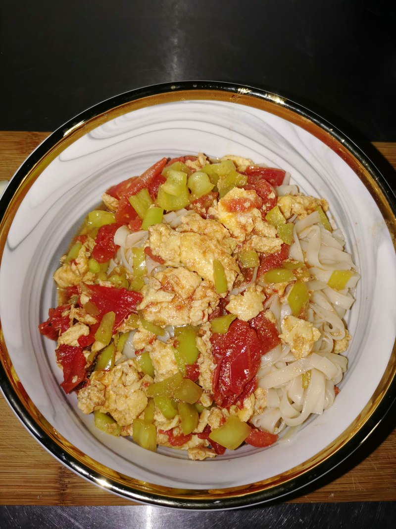 10:加入西红柿鸡蛋青椒卤,拌匀。