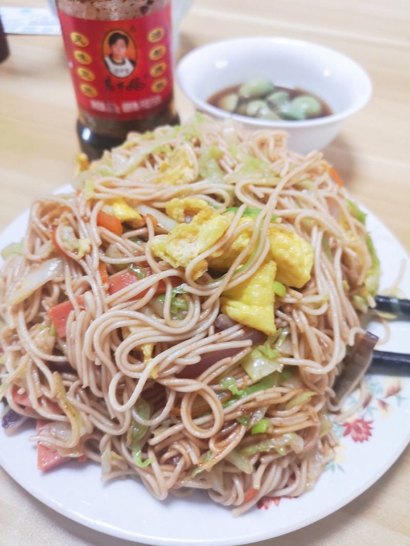 7:加酱油,盐炒几下,加面,鸡蛋,颜色浅可以再加点酱油,翻炒几下,加鸡精调味。