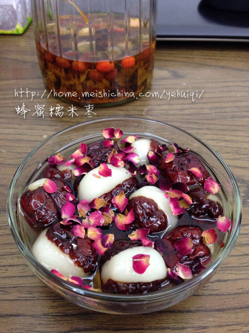 8:备着蜂蜜,加少许水。剥点儿玫瑰花瓣。蒸好全部加一起泡会入味即可。