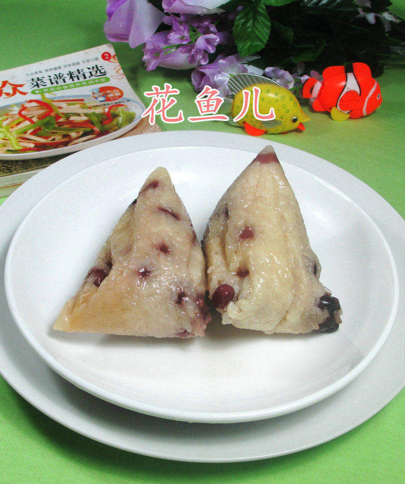 4:先将已泡发的红豆淘洗一下合入糯米中和匀。