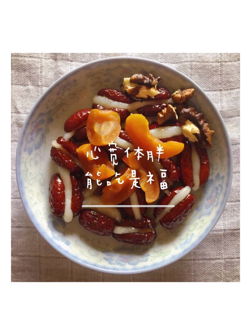 核桃1个;腌制山楂干4块;蜂蜜几勺;