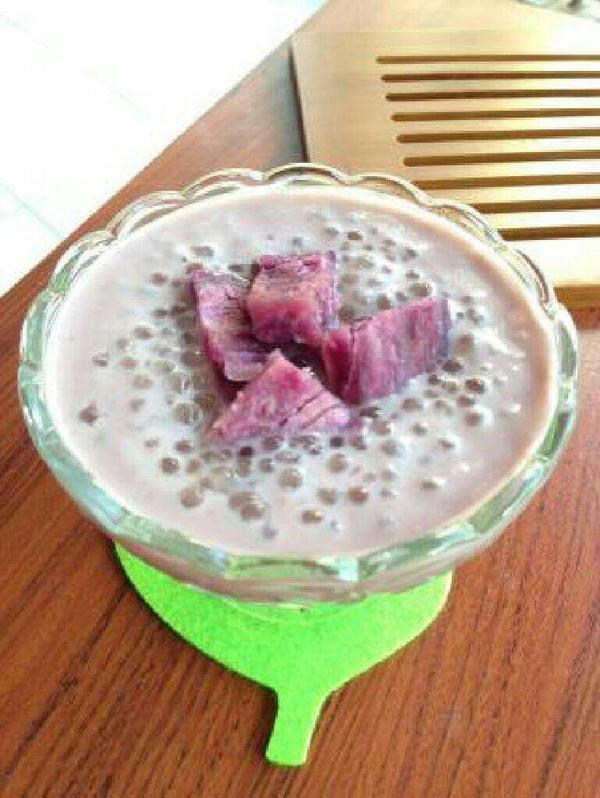 紫薯3个;西米适量;椰酱200ML;纯牛奶500ML;