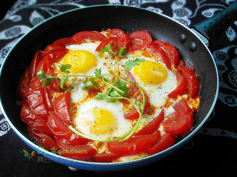16:再放上番茄片,并撒上欧芹粉和黑胡椒粉