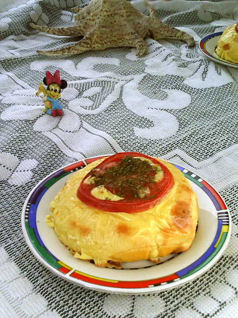 高筋粉100克;细砂糖10克;盐1/8小勺;番茄酱5克;蛋白15克;干酵母1/4小勺;水42克;黄油5克;切达奶酪25克;