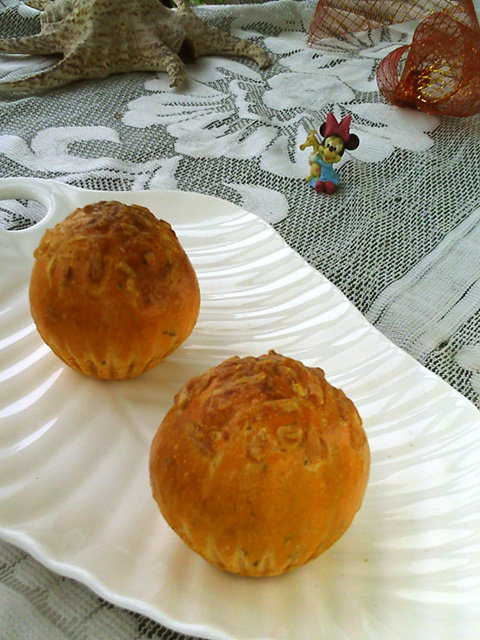 11:上火240摄氏度,下火200摄氏度,烤箱中下层,30分钟。看上色情况,尤其注意小面包先熟,大约20分钟,先取出。面包入炉后,烤箱内喷蒸汽。