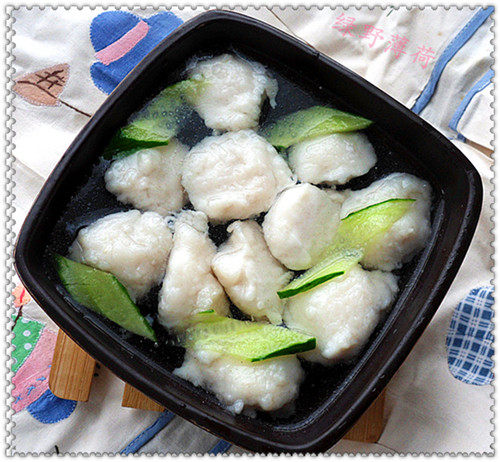4:烧水,用手挤出玻璃球大小的丸子,放水中煮,有点像煮汤圆啦,